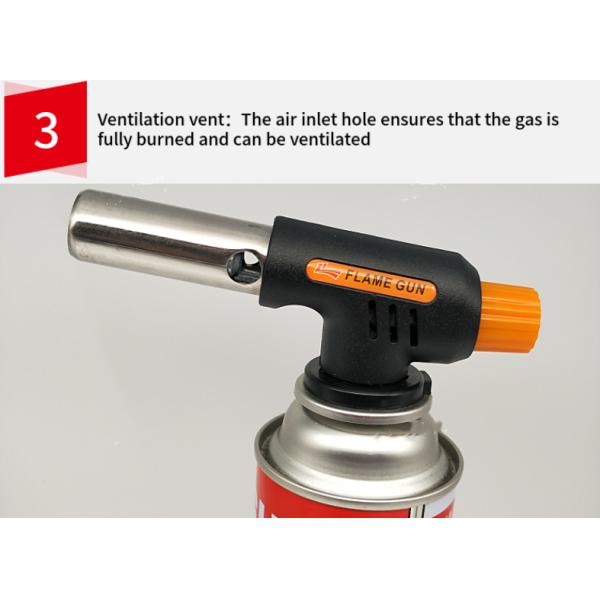 2.To use butane gas,please turn the body upside down and push the butane tank firmly to the inflation valve. After filling the butane gas,please wait a few minutes until the gas is stable.